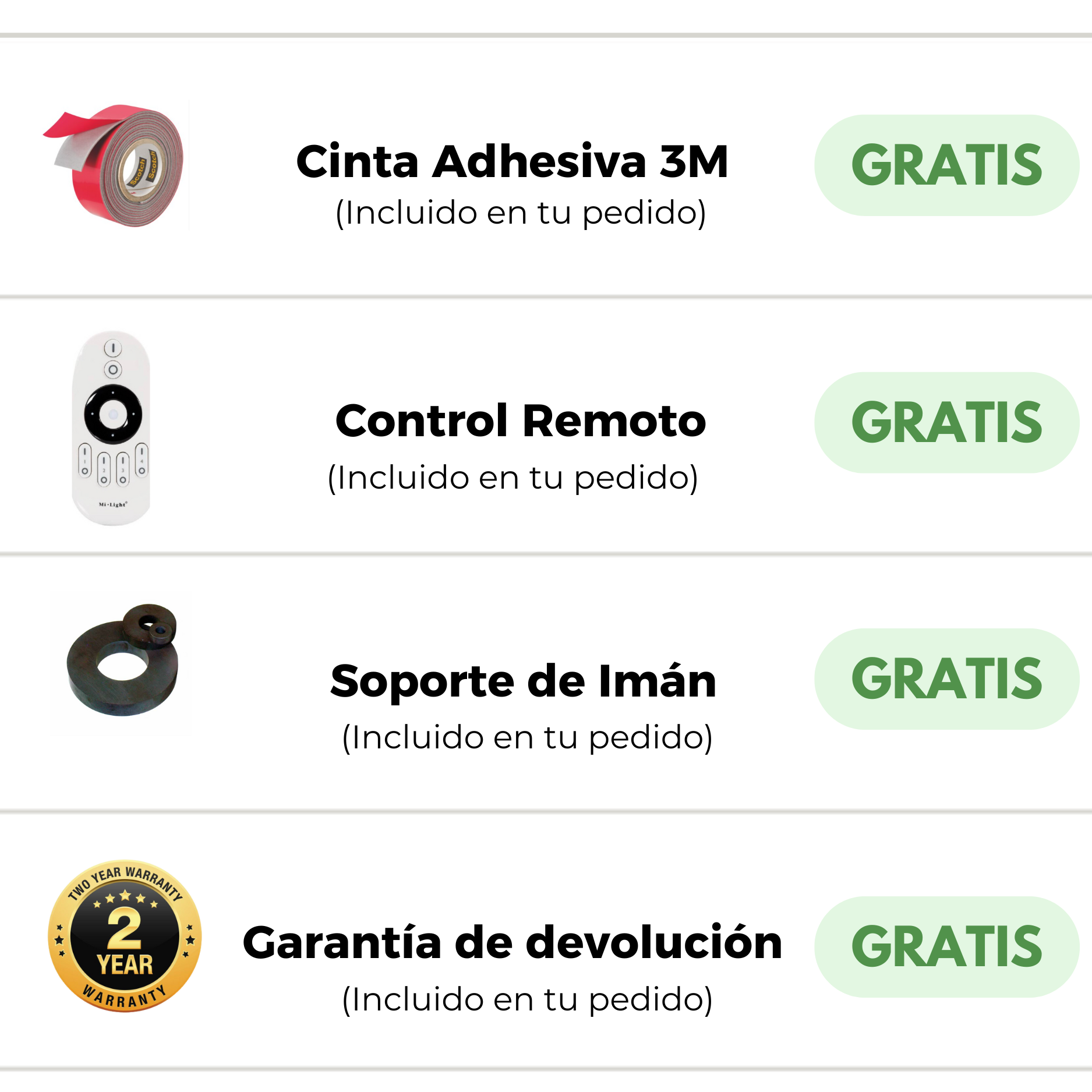 Por ley concedemos a cada consumidor 2 años de garantía si el producto sale defectuoso.