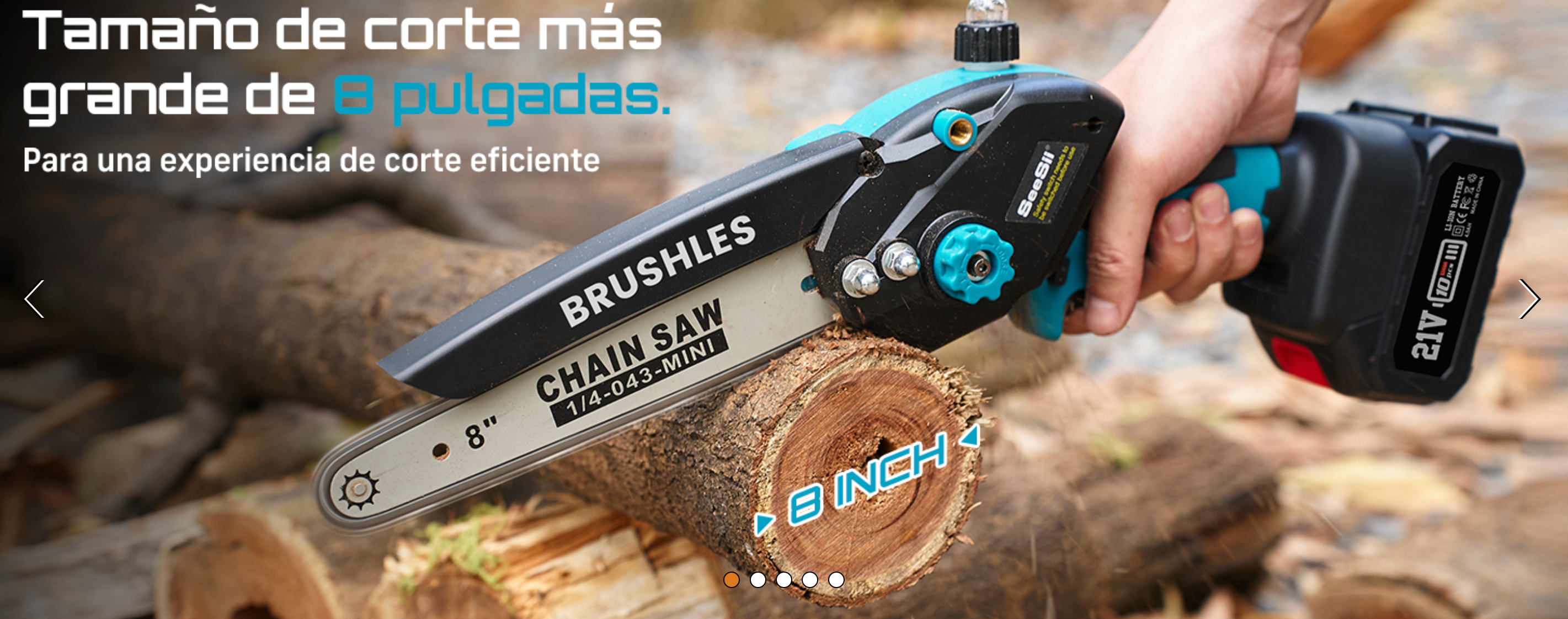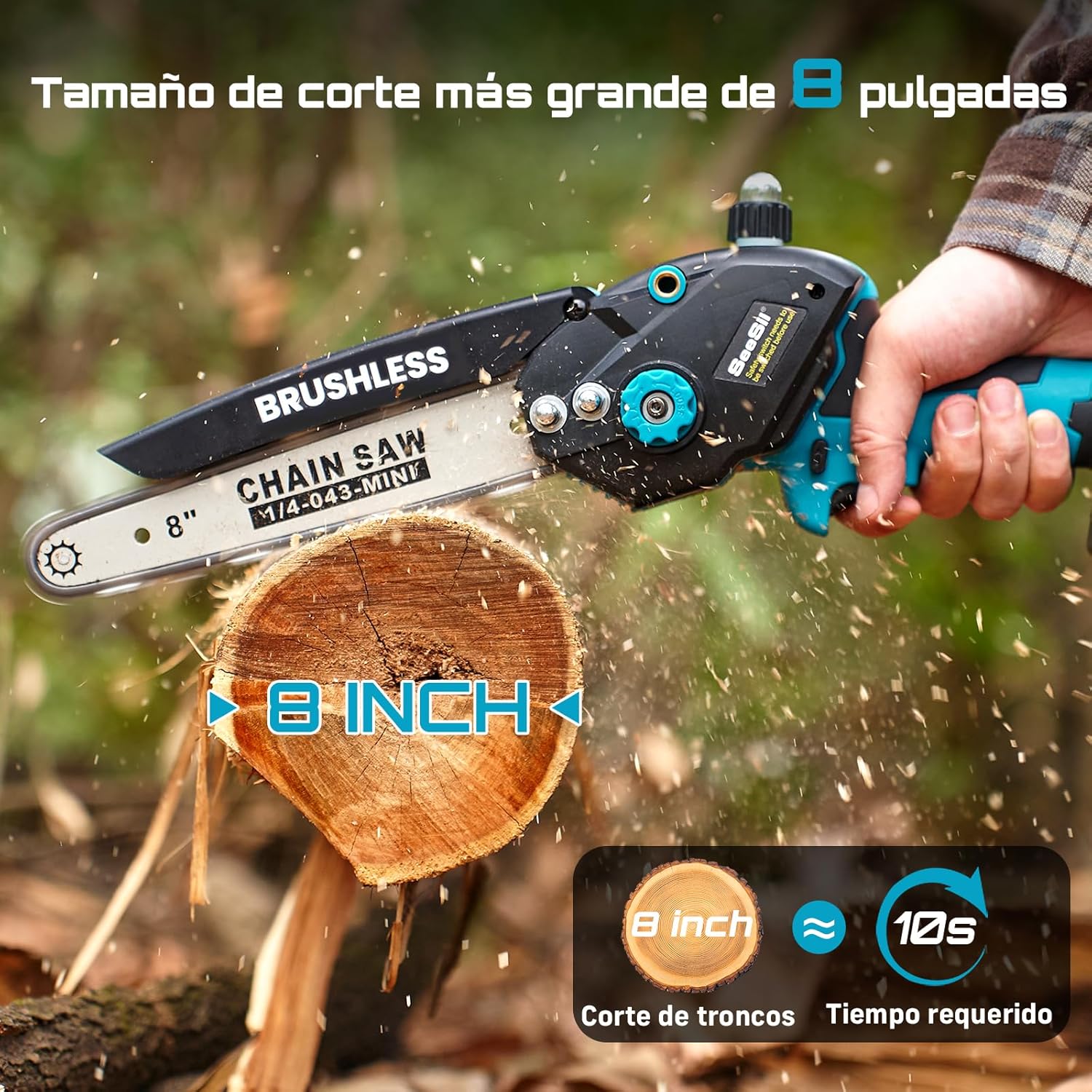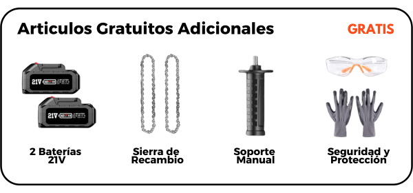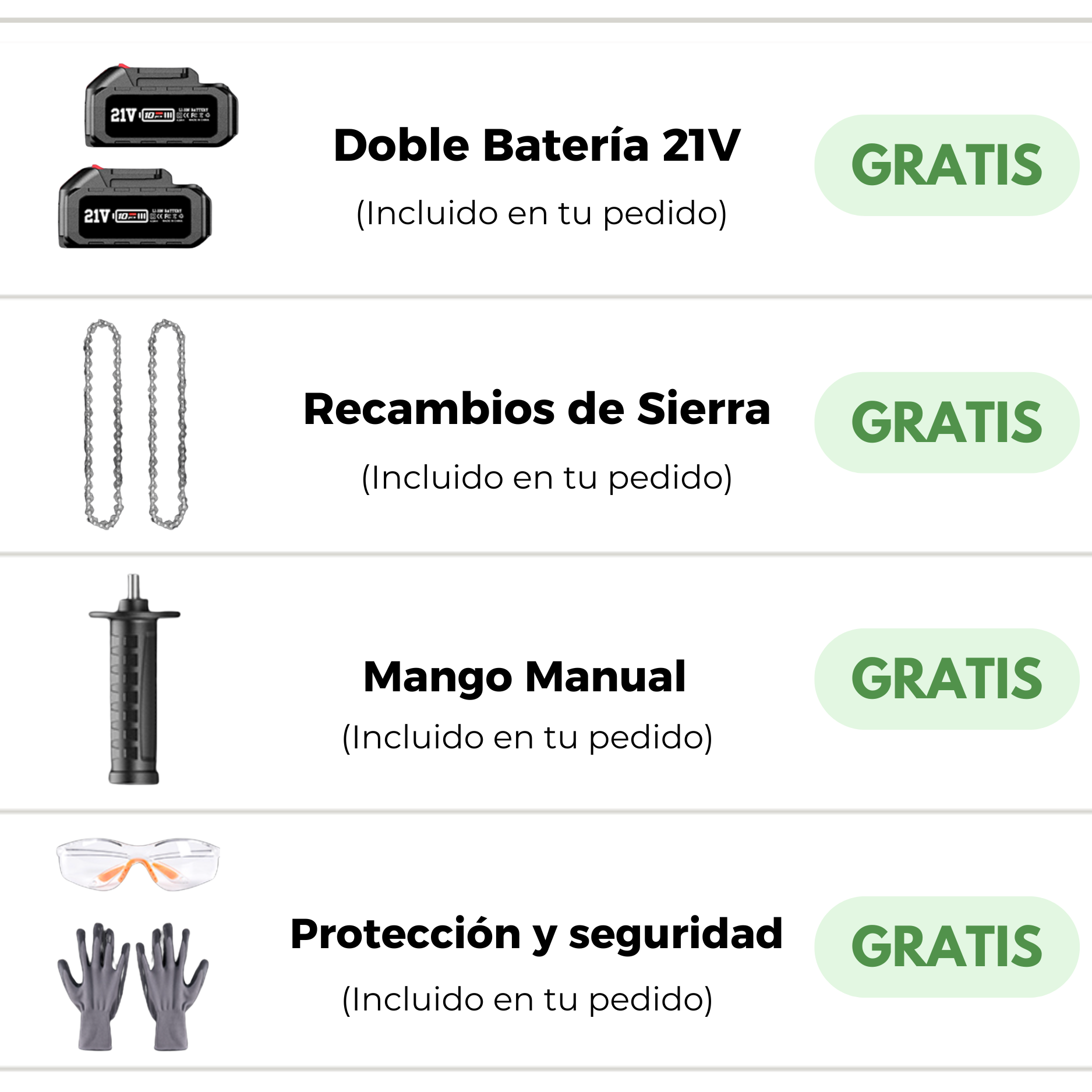 No necesita bujías, gasolina ni filtros. Solo recarga la batería, revisa la cadena y estarás listo para cortar, además de una cadena forjada.
