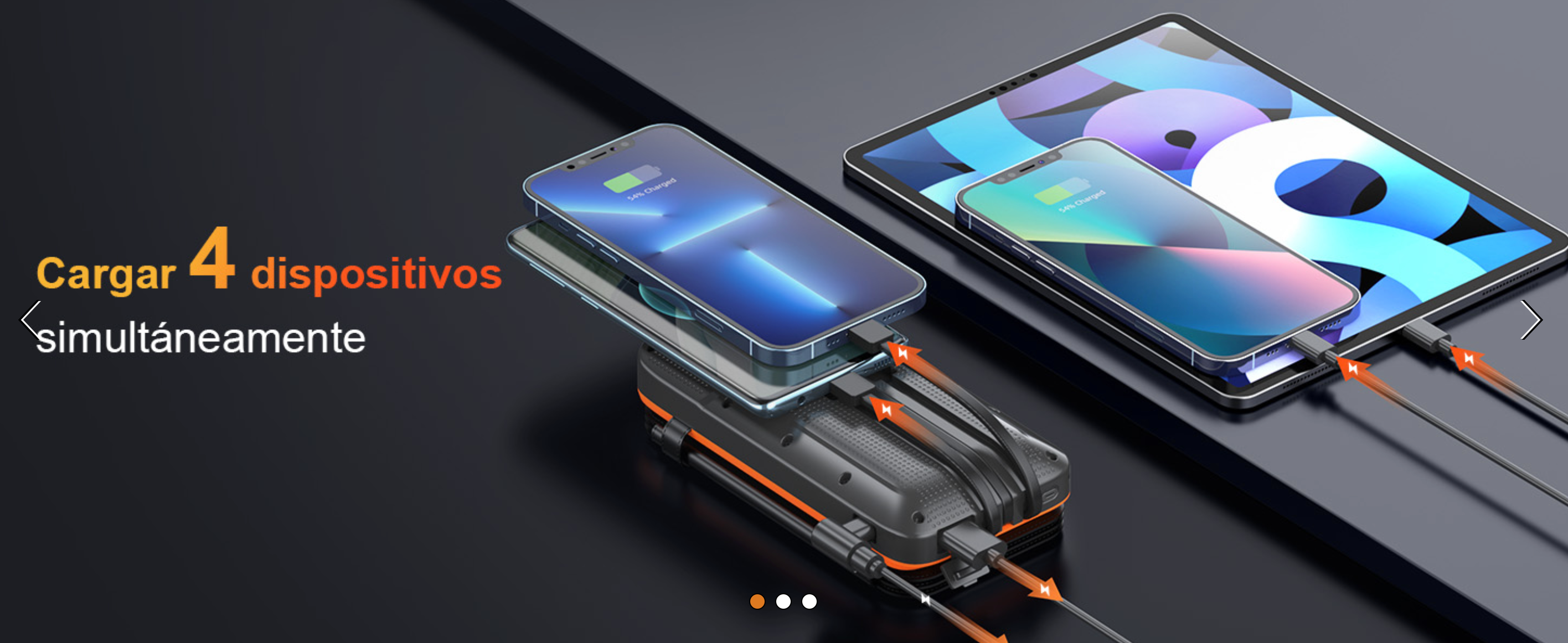 Sí, la power bank tiene múltiples salidas USB y puede cargar hasta 3 o 4 dispositivos simultáneamente, dependiendo del modelo.